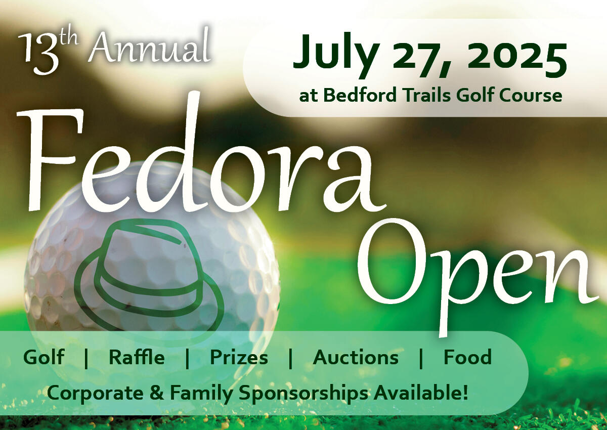 SAVE THE DATE! The 13th Annual Fedora Open will be on Sunday, July 27th, 2025 at the Bedford Trails Golf Course.Thank you to all of the 2024 sponsors, golfers, and volunteers who made the 12th Annual Fedora Open a great success!